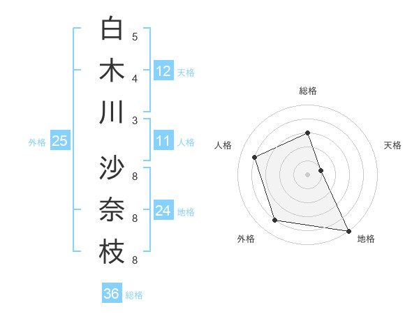 白木川 沙奈枝さんを姓名の画数から五運を鑑定