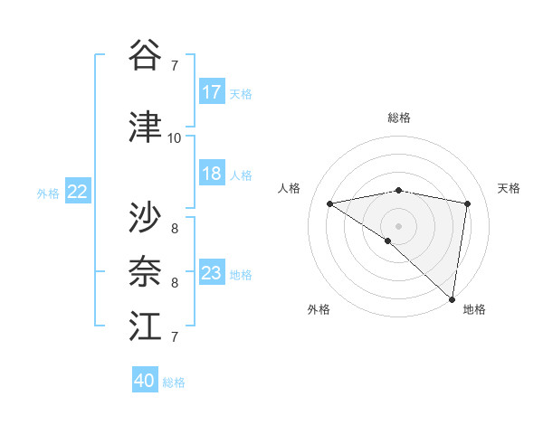 谷津 沙奈江さんの天格は17画の4点!