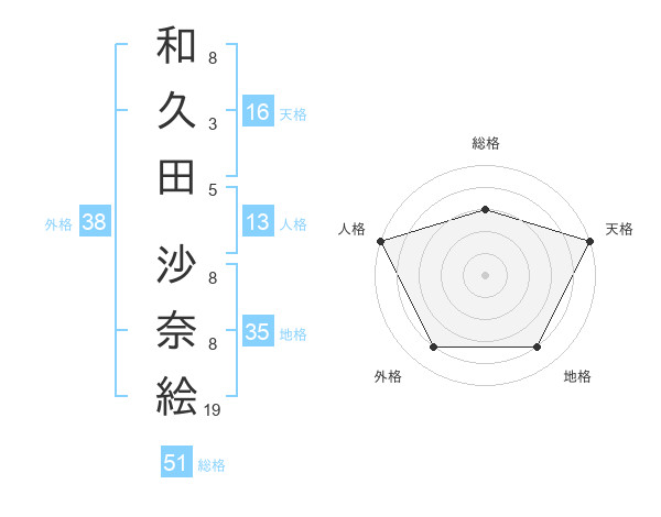 和久田 沙奈絵さんの総格は51画の3点!