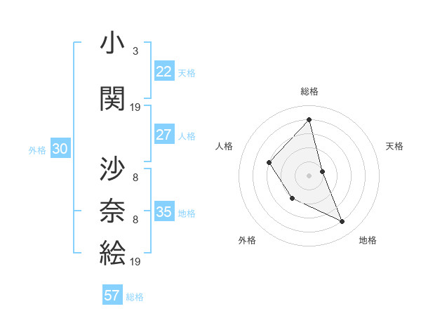 小関 沙奈絵さんを姓名の画数から五運を鑑定
