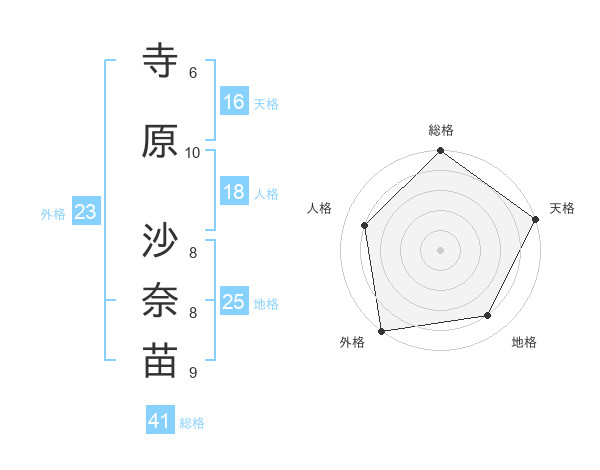 寺原 沙奈苗さんを姓名の画数から五運を鑑定