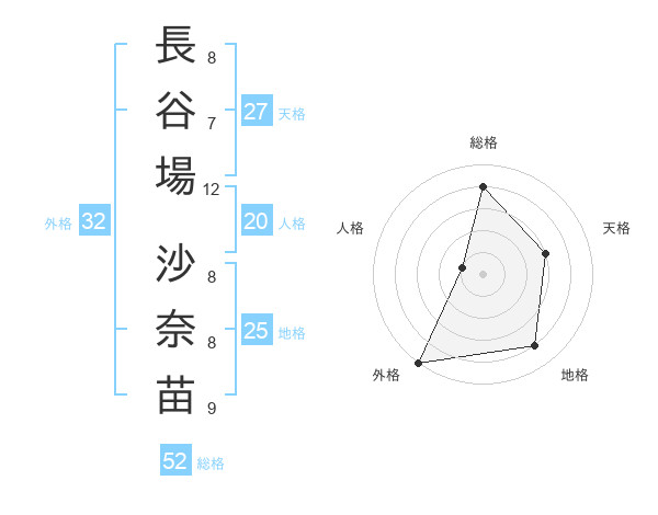 長谷場 沙奈苗さんを姓名の画数から五運を鑑定