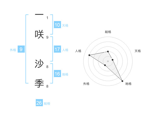 一咲 沙季さんを姓名の画数から五運を鑑定