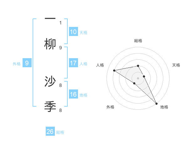 一柳 沙季さんを姓名の画数から五運を鑑定