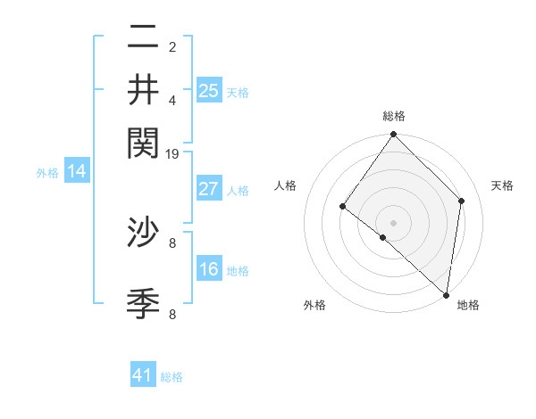 二井関 沙季さんを姓名の画数から五運を鑑定