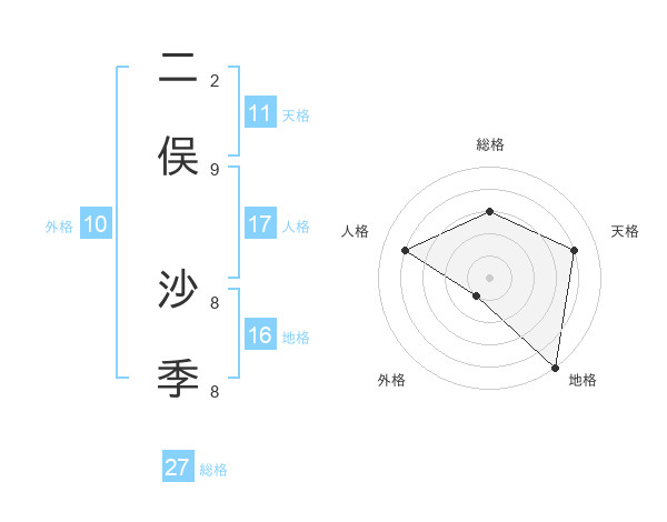 二俣 沙季さんを姓名の画数から五運を鑑定