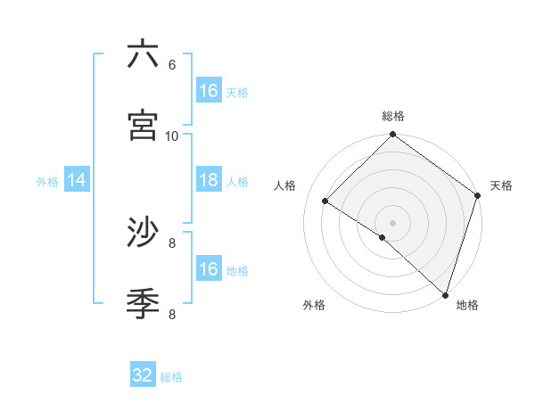 六宮 沙季さんを姓名の画数から五運を鑑定
