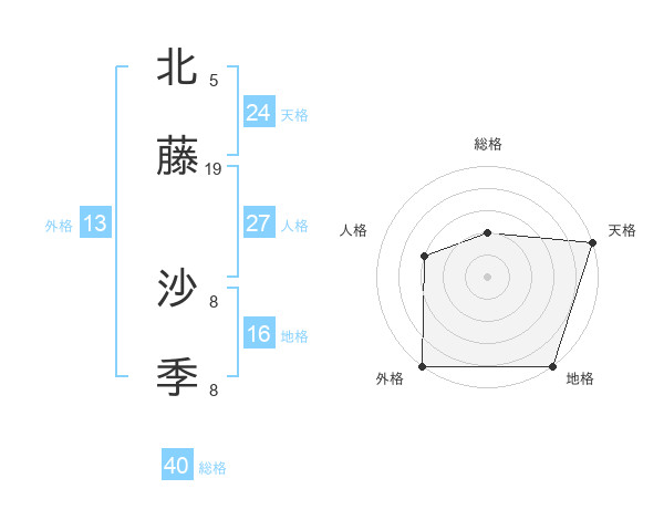 北藤 沙季さんを姓名の画数から五運を鑑定