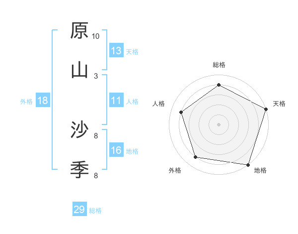原山 沙季さんの総格は29画の4点!