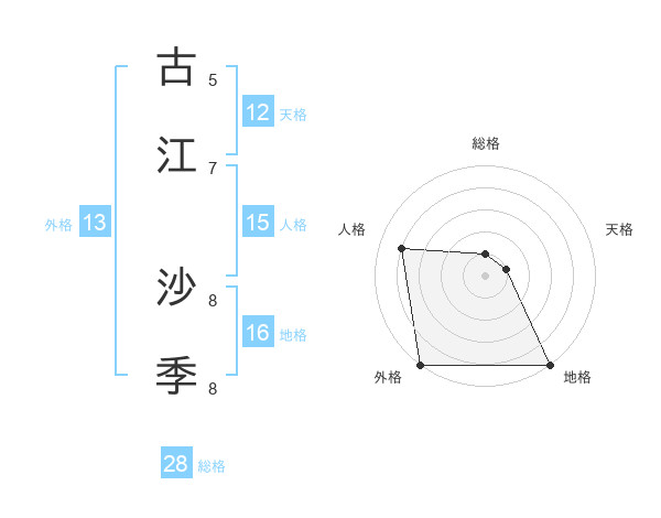 古江 沙季さんの外格は13画の5点!