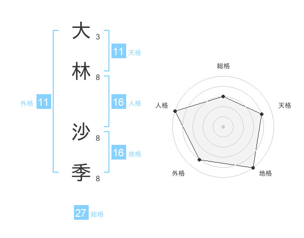 大林 沙季さんの天格は11画の4点!