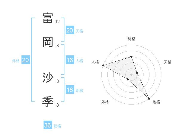 富岡 沙季さんの天格は20画の1点!