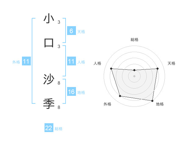 小口 沙季さんの総格は22画の1点!