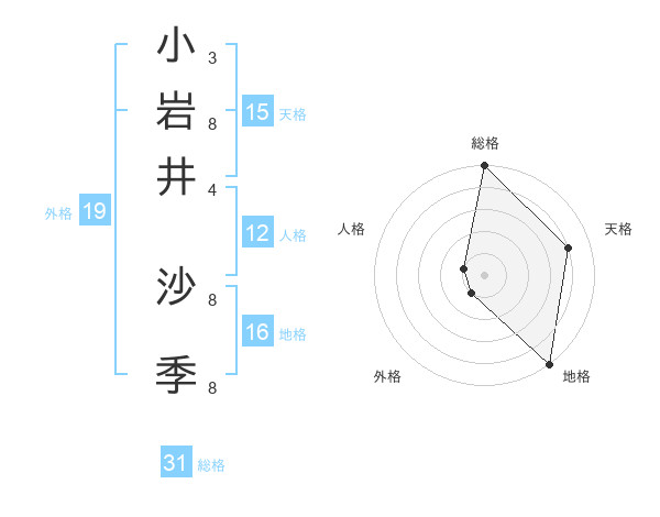 小岩井 沙季さんの総格は31画の5点!