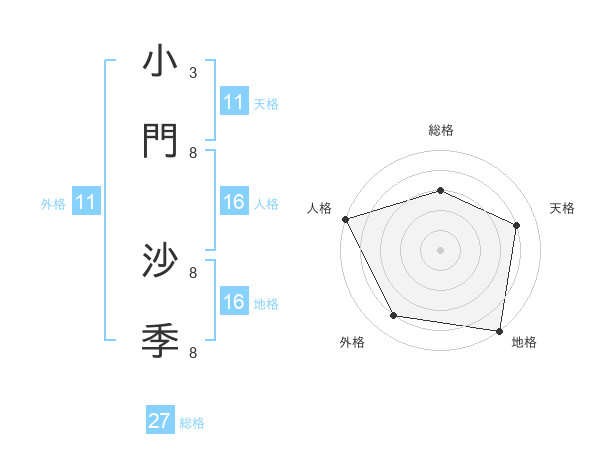 小門 沙季さんの天格は11画の4点!