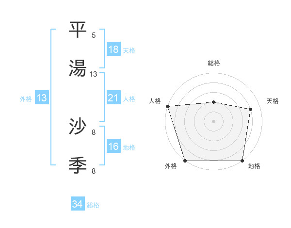 平湯 沙季さんの天格は18画の4点!