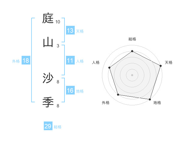 庭山 沙季さんを姓名の画数から五運を鑑定