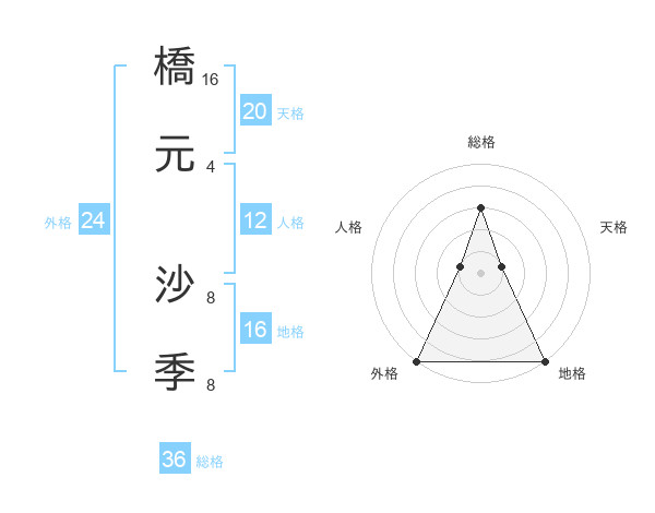 橋元 沙季さんの外格は24画の5点!