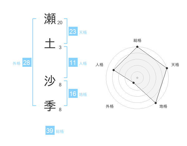 瀬土 沙季さんを姓名の画数から五運を鑑定