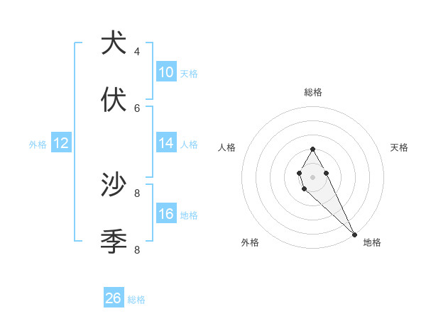 犬伏 沙季さんの総格は26画の2点!