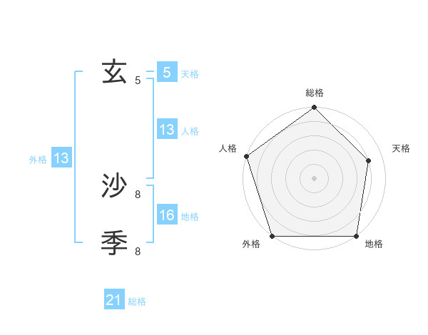 玄 沙季さんの総格は21画の5点!