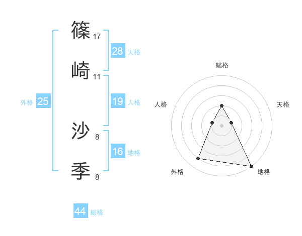 篠崎 沙季さんの外格は25画の4点!