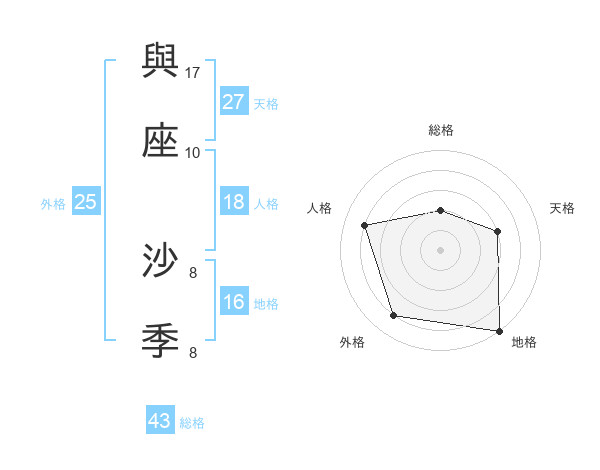 與座 沙季さんの総格は43画の2点!