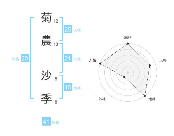菊農 沙季さんの天格は25画の4点!