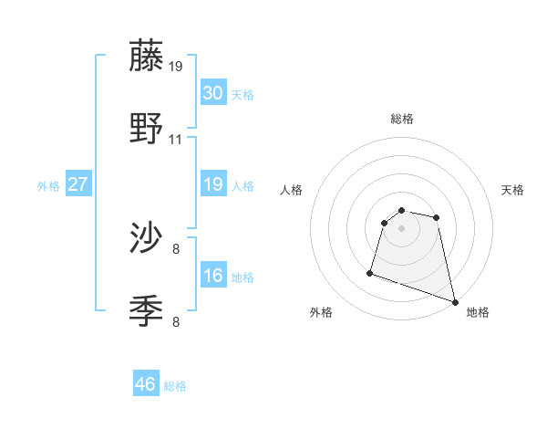 藤野 沙季さんの天格は30画の2点!