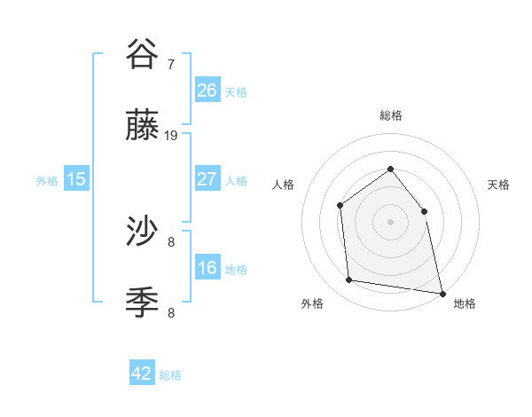 谷藤 沙季さんの総格は42画の3点!