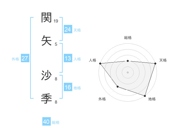 関矢 沙季さんの天格は24画の5点!