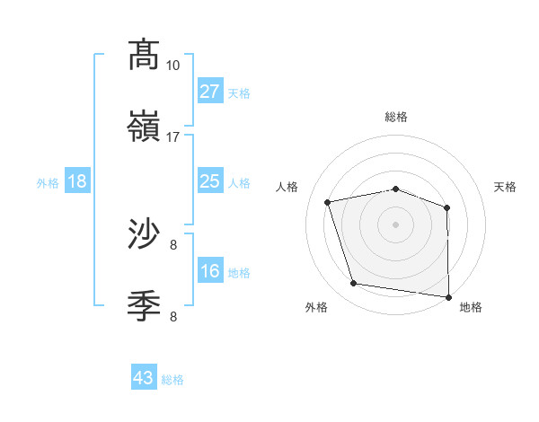髙嶺 沙季さんの天格は27画の3点!