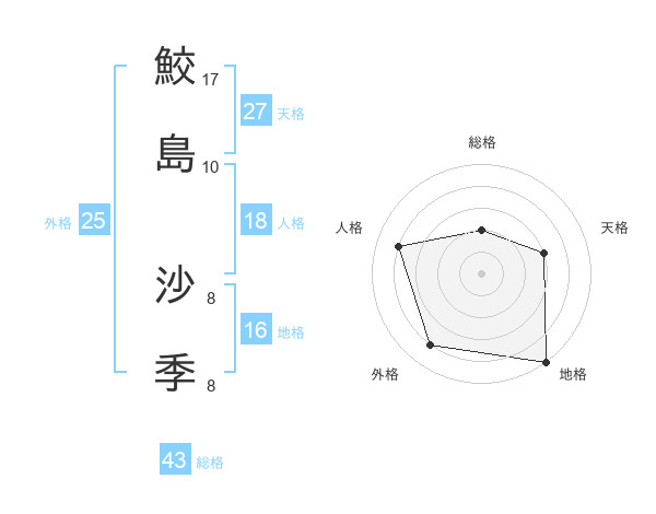 鮫島 沙季さんを姓名の画数から五運を鑑定