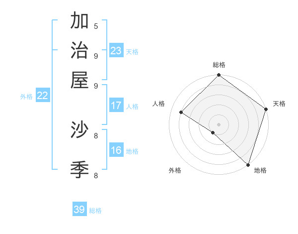 加治屋 沙季さんを姓名の画数から五運を鑑定