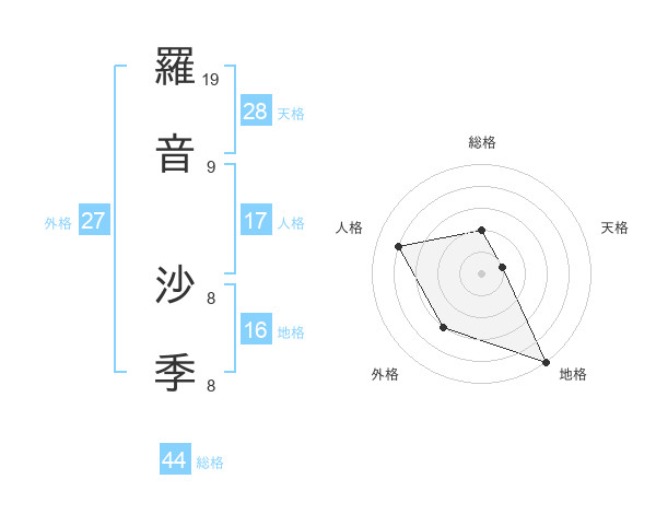 羅音 沙季さんを姓名の画数から五運を鑑定