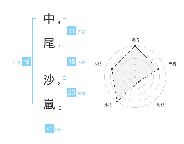 中尾 沙嵐さんの総格は31画の5点!