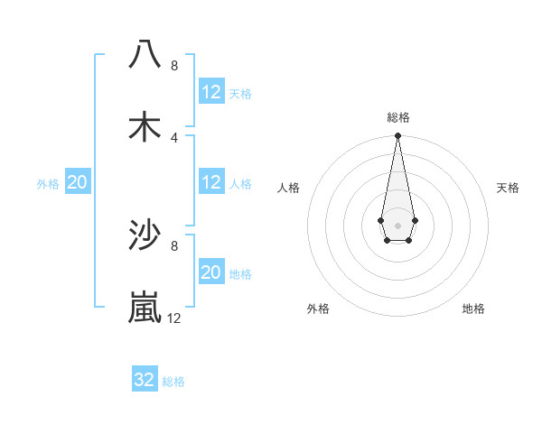 八木 沙嵐さんの総格は32画の5点!