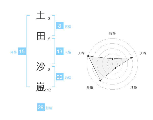 土田 沙嵐さんを姓名の画数から五運を鑑定