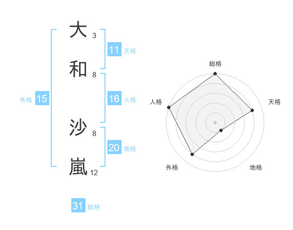 大和 沙嵐さんの総格は31画の5点!