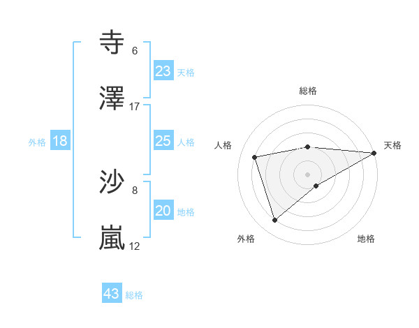 寺澤 沙嵐さんを姓名の画数から五運を鑑定