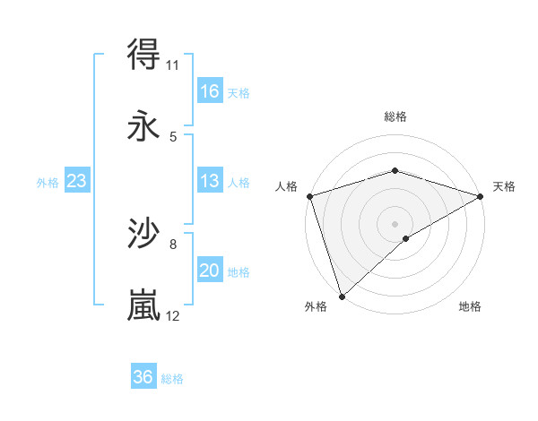 得永 沙嵐さんを姓名の画数から五運を鑑定