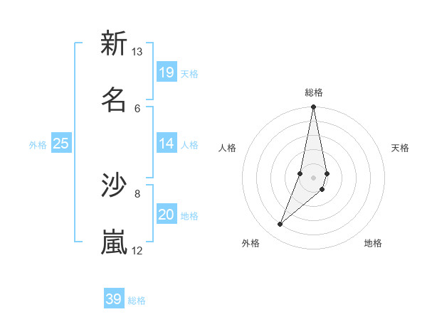 新名 沙嵐さんを姓名の画数から五運を鑑定