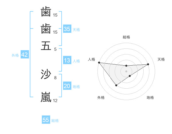 歯歯五 沙嵐さんを姓名の画数から五運を鑑定
