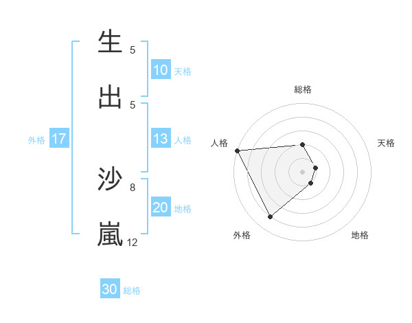 生出 沙嵐さんを姓名の画数から五運を鑑定