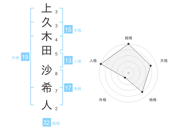 上久木田 沙希人さんを姓名の画数から五運を鑑定