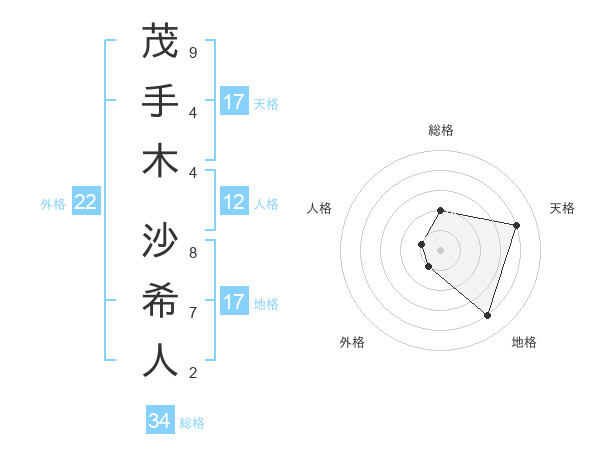 茂手木 沙希人さんの地格は17画の4点!