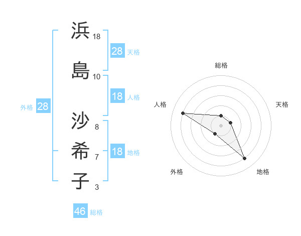浜島 沙希子さんを姓名の画数から五運を鑑定