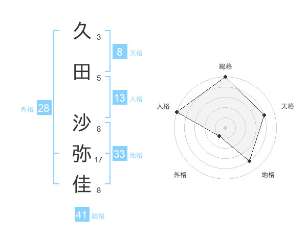 久田 沙弥佳さんを姓名の画数から五運を鑑定