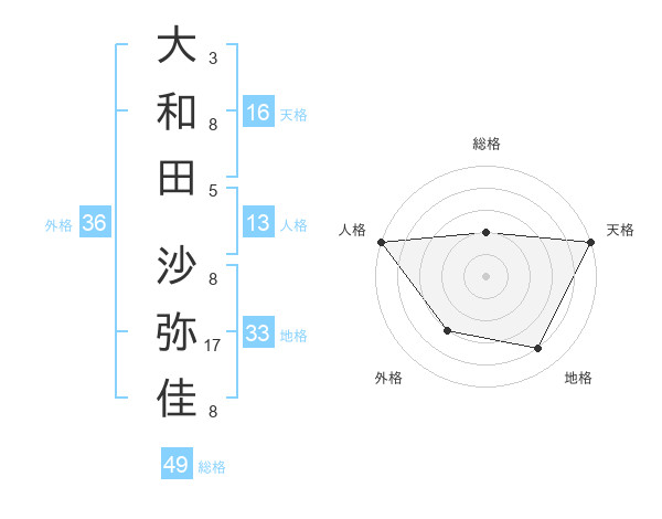 大和田 沙弥佳さんを姓名の画数から五運を鑑定