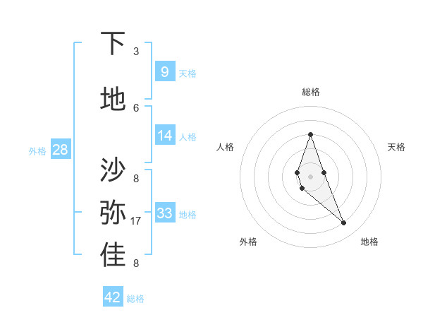 下地 沙弥佳さんを姓名の画数から五運を鑑定